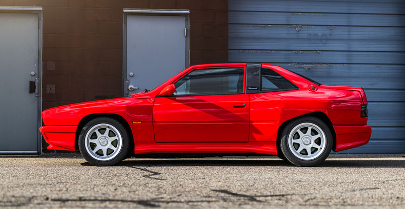 Named after a Mesopotamian wind, the Shamal was the most extreme evolution of the original Biturbo family of cars. Like the Karif, it was based on the shorter Biturbo Spyder chassis, with the addition of two small rear seats. The body design was completely new: a muscular and aggressive design from the pen of Marcello Gandini, it could be instantly recognized by the distinctive shape of the rear wheel arches-a Gandini signature of the era.